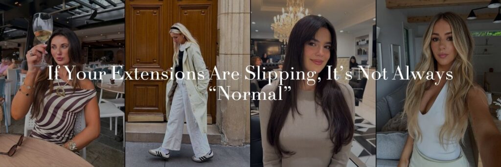 If your hair extensions are falling out, slipping, or shedding weeks before your maintenance appointment, let’s clear something up right away: